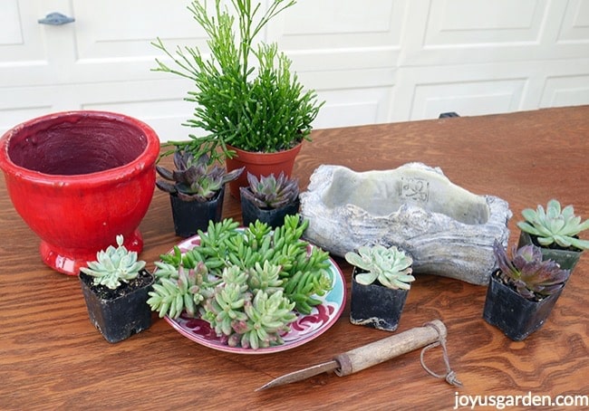 A-red-pot-small-log-cement-planter-small-succulents-succulent-cuttings-sit-on-a-table.succulents-container-gardening_new